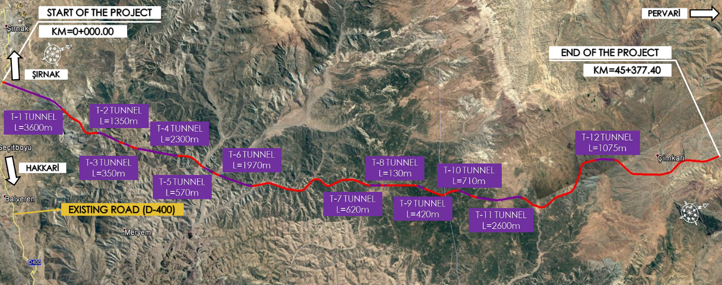 A key tunnel located at the entrance of the corridor on the Şırnak–Uludere section is under construction. Infrastructure works for this tunnel have been completed, and the tunnel will have a total length of 2,845 m, representing one of the major structures within the project.